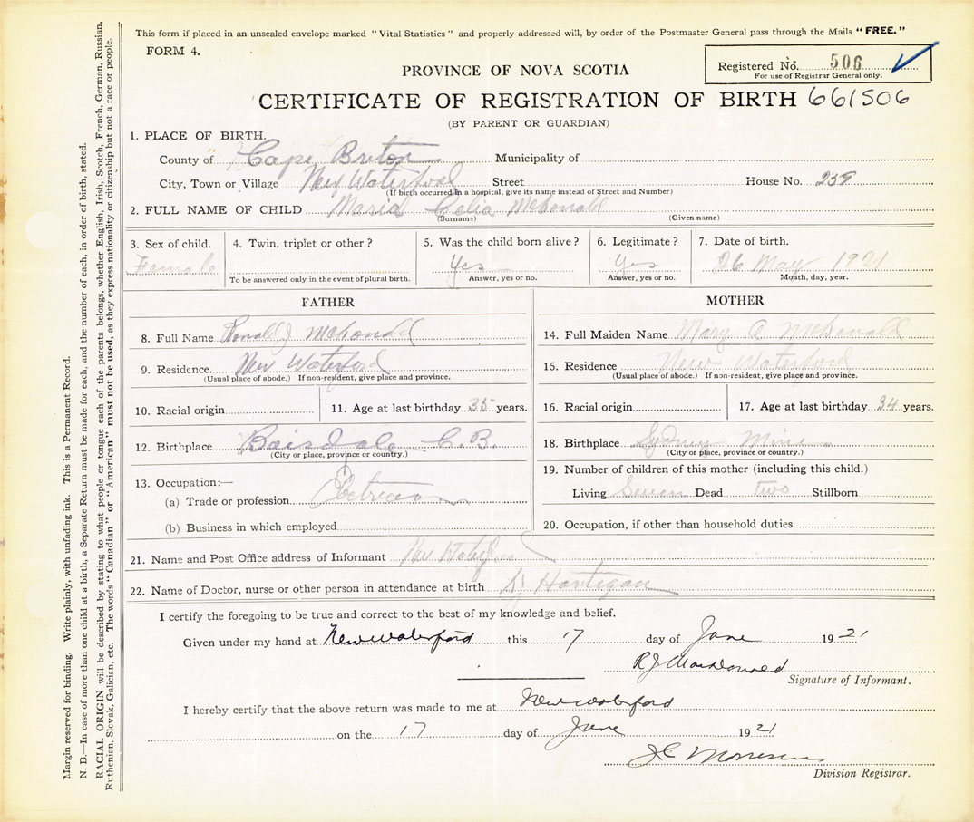 Nova Scotia Archives — https://archives.novascotia.ca/vital-statistics/birth/?ID=413478