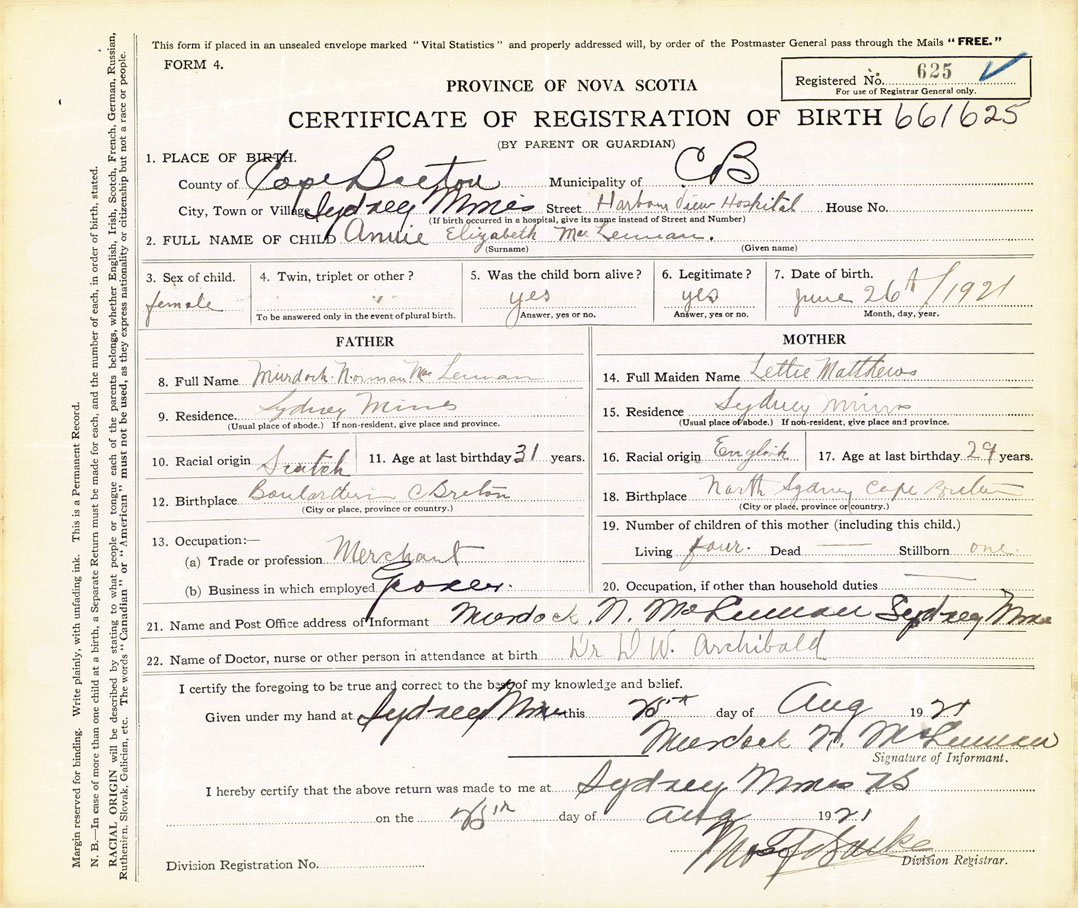 Nova Scotia Archives — https://archives.novascotia.ca/vital-statistics/birth/?ID=413596