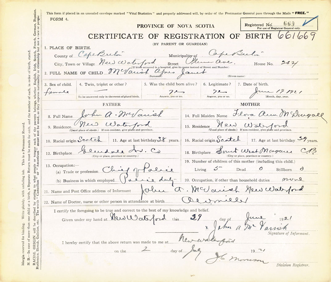 Nova Scotia Archives — https://archives.novascotia.ca/vital-statistics/birth/?ID=413639