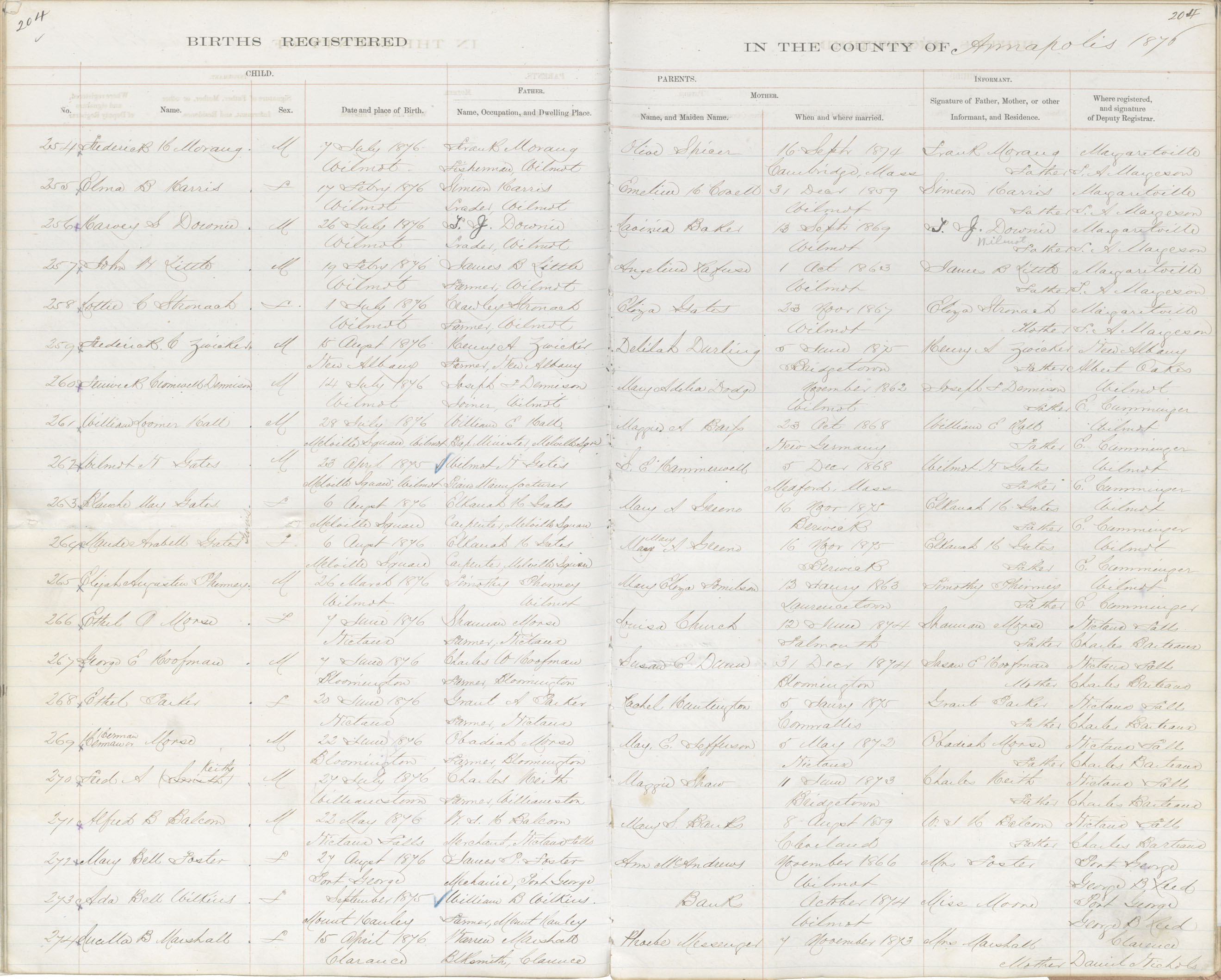 Birth Registration: Year: 1876 book: 1801 page: 204 number: 263