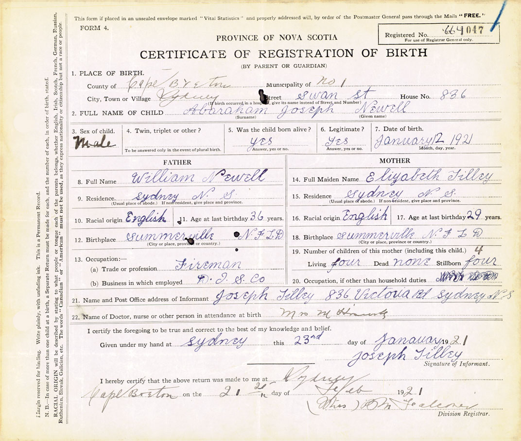 Nova Scotia Archives — https://archives.novascotia.ca/vital-statistics/birth/?ID=414316