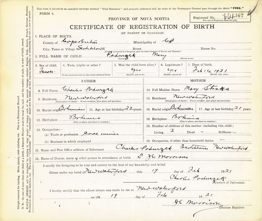 21. Name and Post Office address of Informant Charles Podurzek Scotchtown, New Waterford