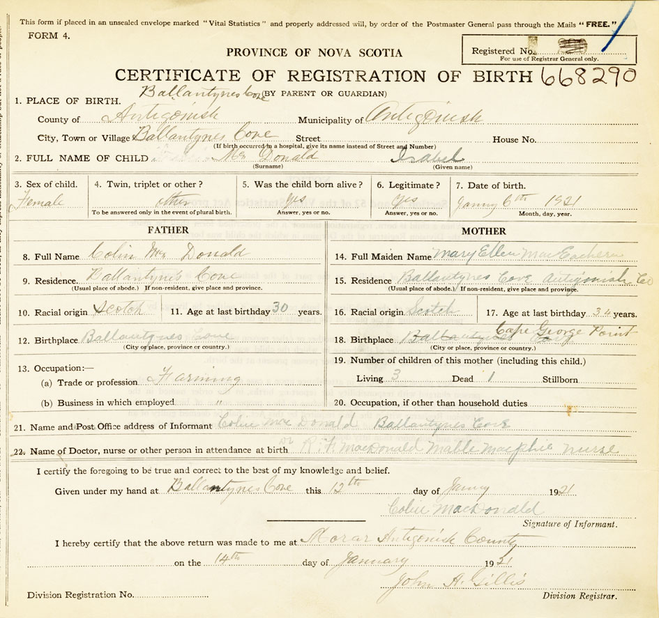 Nova Scotia Archives — https://archives.novascotia.ca/vital-statistics/birth/?ID=414648