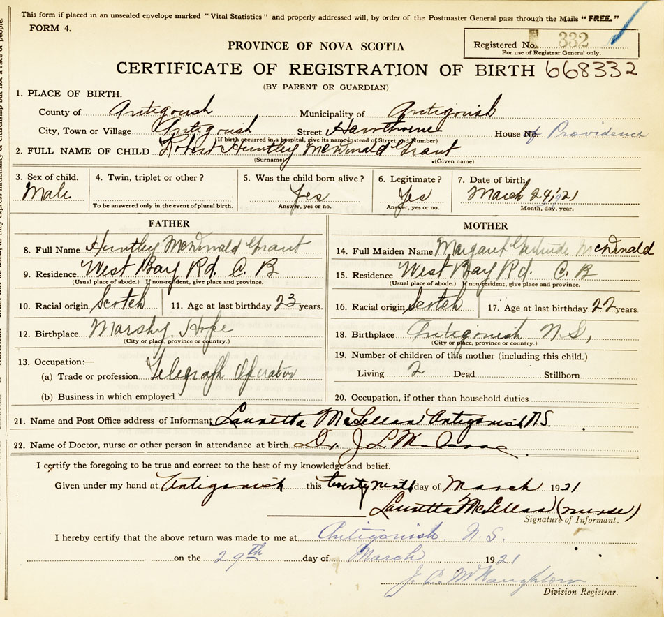 18. Birthplace Antigonish, N S