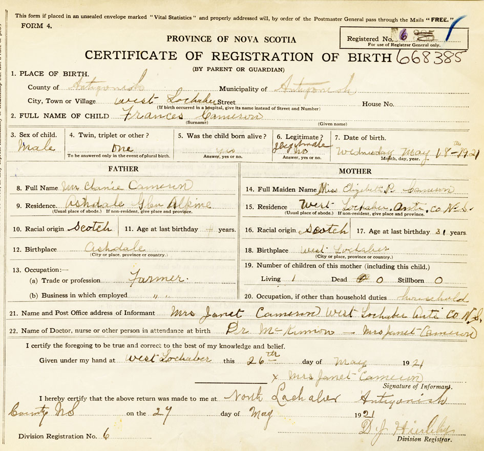 Nova Scotia Archives — https://archives.novascotia.ca/vital-statistics/birth/?ID=414741