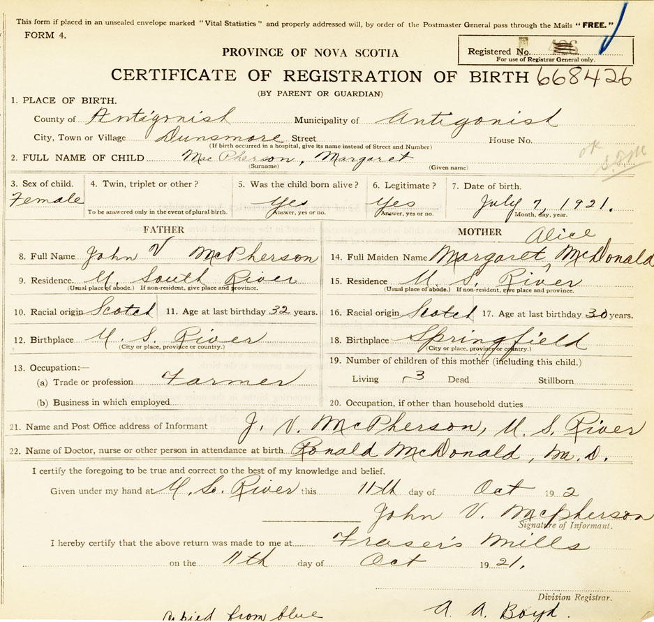 Nova Scotia Archives — https://archives.novascotia.ca/vital-statistics/birth/?ID=414782