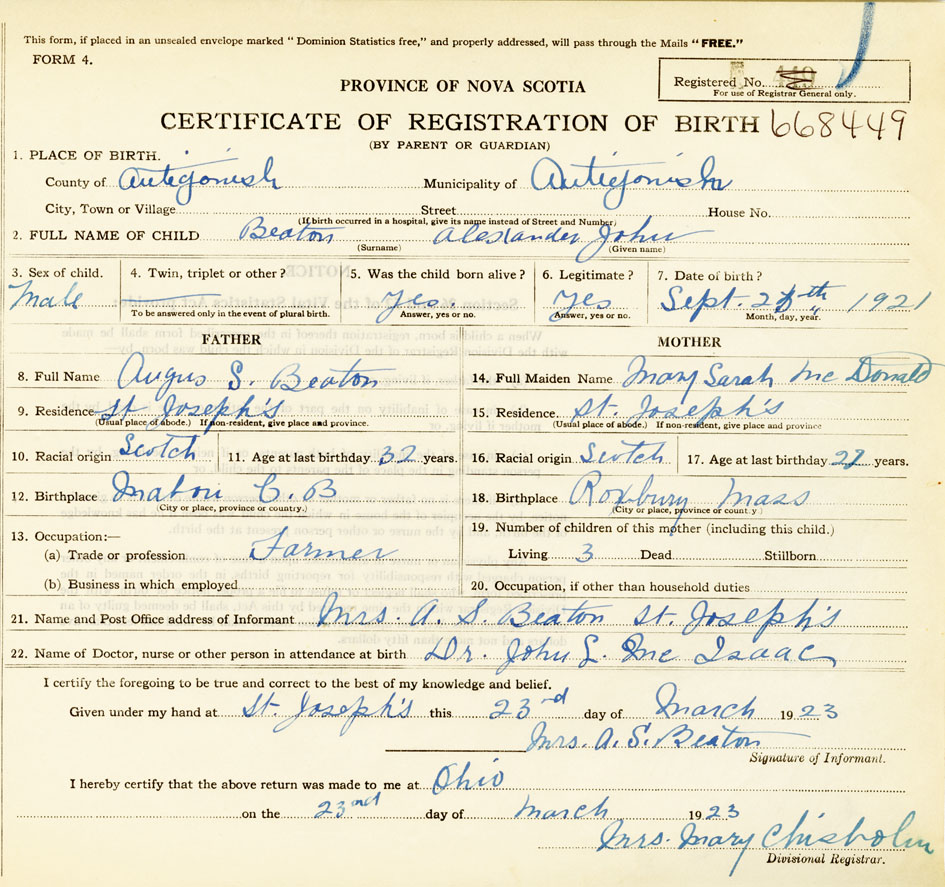 Nova Scotia Archives — https://archives.novascotia.ca/vital-statistics/birth/?ID=414805