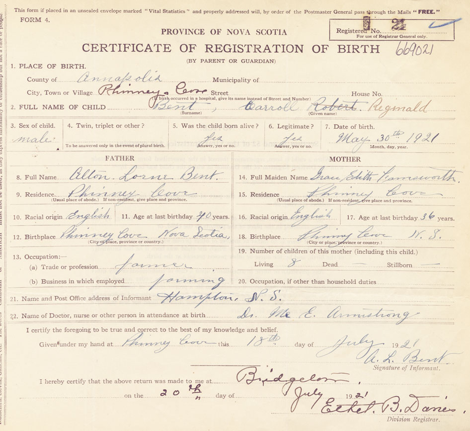 18. Birthplace Phinneys Cove N.S.
