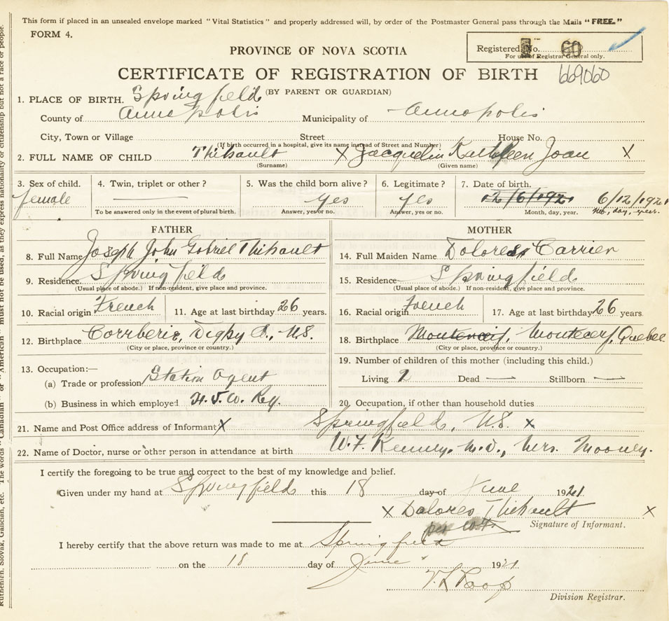 21. Name and Post Office address of Informant Dolores Thibault Springfield
