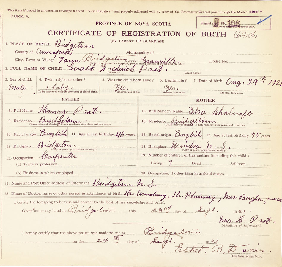 Male Birth Registration: Year: 1921 number: 66900106
