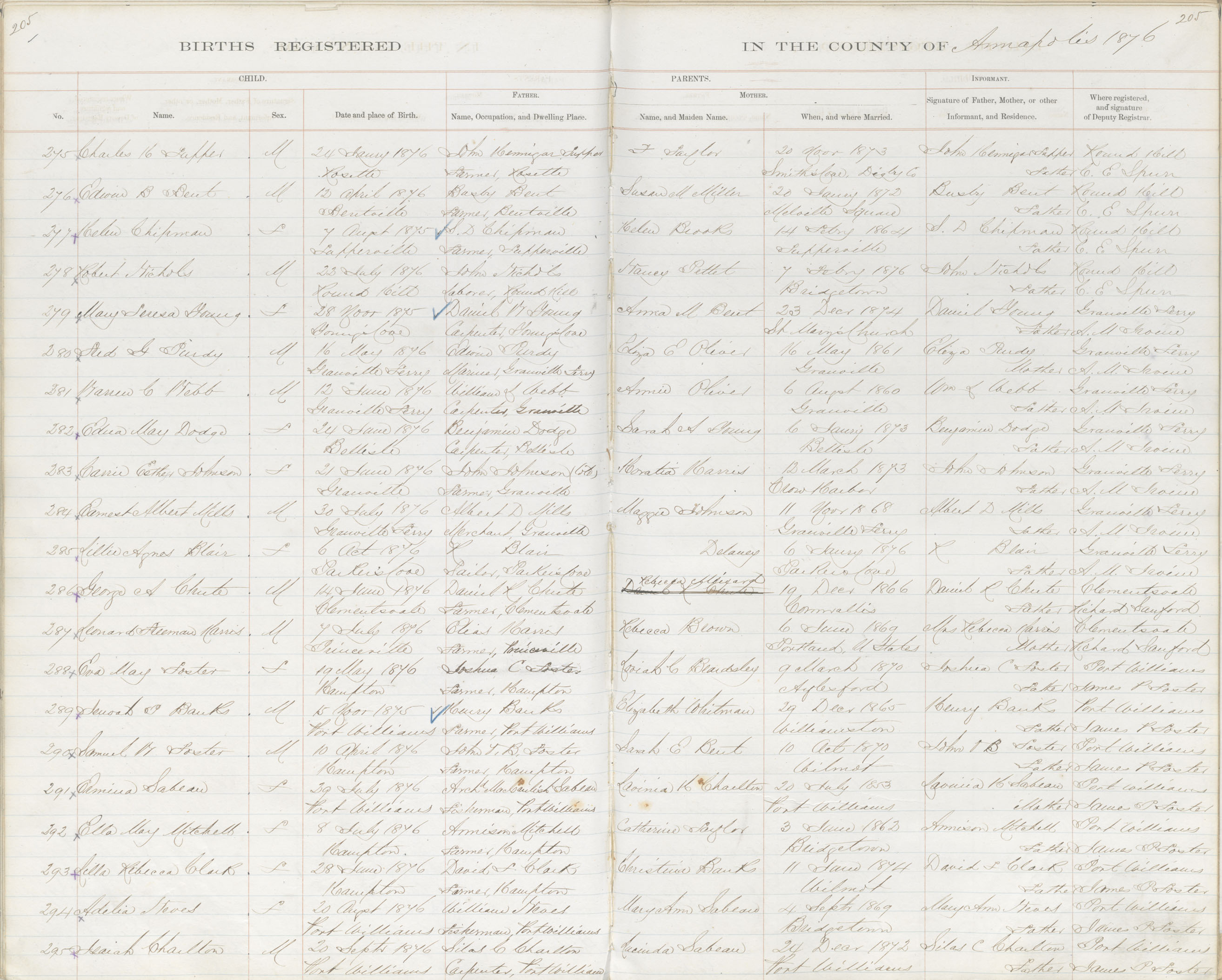 Birth Registration: Year: 1876 book: 1801 page: 205 number: 275