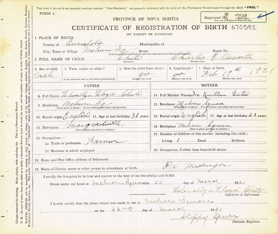 2. FULL NAME OF CHILD Chute, Charles Ellsworth