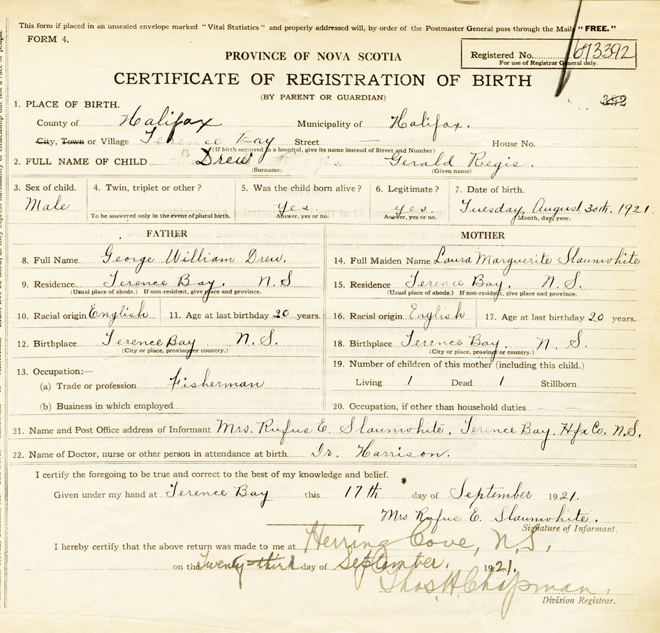 21. Name and Post Office address of Informant Mrs Rufus E. Shaunwhite Terence Bay