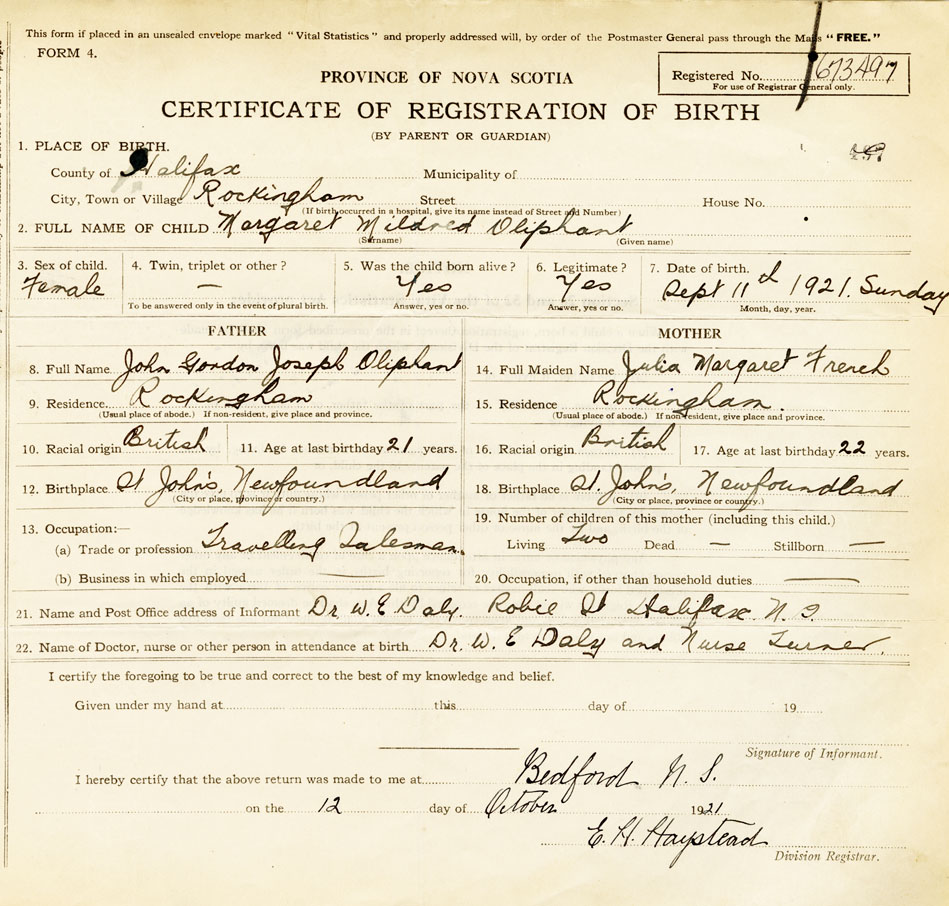 2. FULL NAME OF CHILD Oliphant, Margaret Mildred
