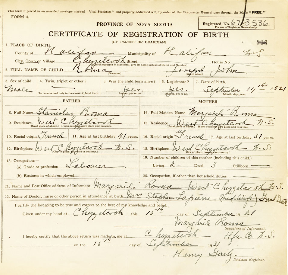 21. Name and Post Office address of Informant Margarite Roma West Chezzetcook