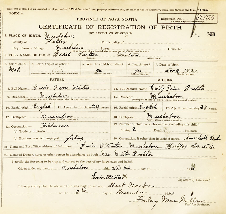 21. Name and Post Office address of Informant Ervin O Winters Mushaboom, Halifax