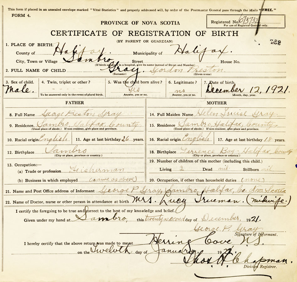 21. Name and Post Office address of Informant George P Gray Sambro, Halifax Co., Nova Scotia