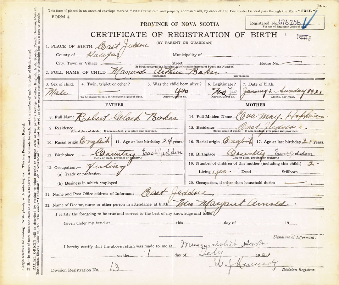Male Birth Registration: Year: 1921 number: 67600206