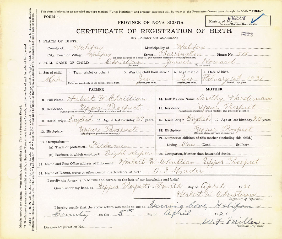 Male Birth Registration: Year: 1921 number: 67600228