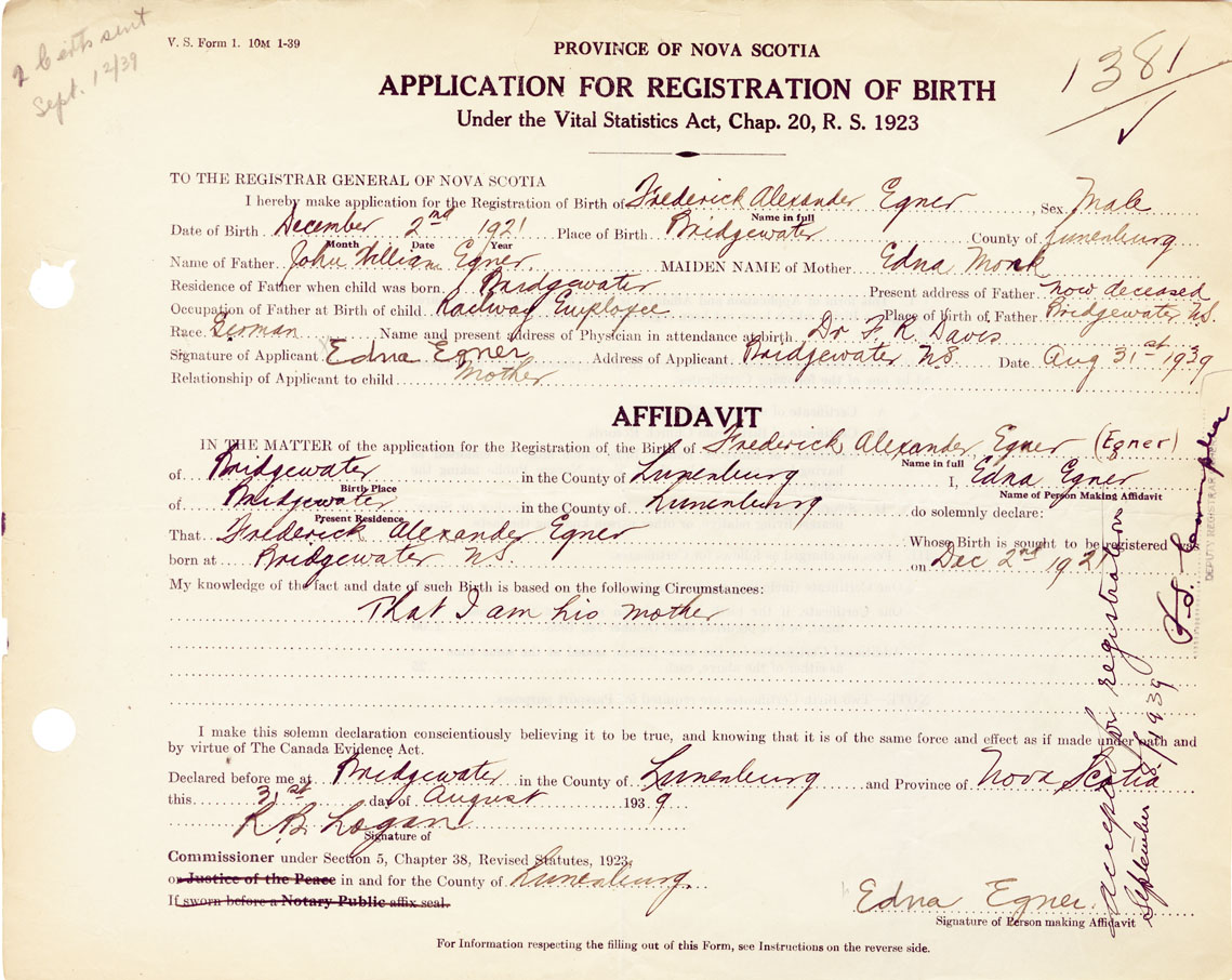 Date of Birth December 2, 1921 Place of Birth BridgewaterCounty of Lunenburg