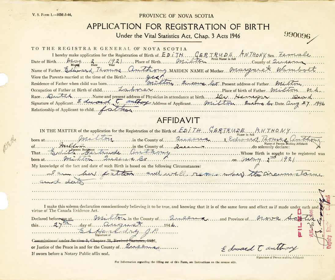 That Edith GertrudeAnthony Whose Birth is sought to be registered was