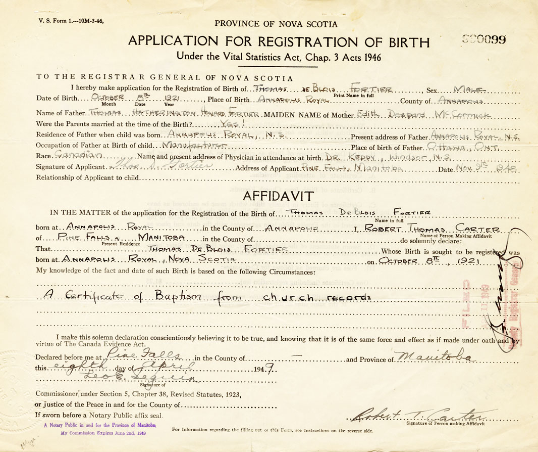 21. Name and Post Office address of Informant Thomas D. Fortier Pine Falls, Manitoba