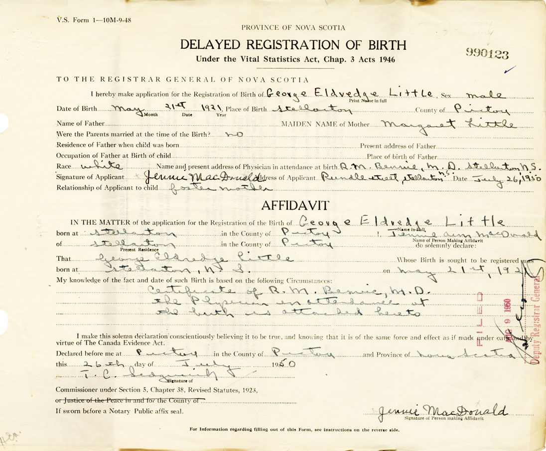 That George EldredgeMacDonald Whose Birth is sought to be registered was