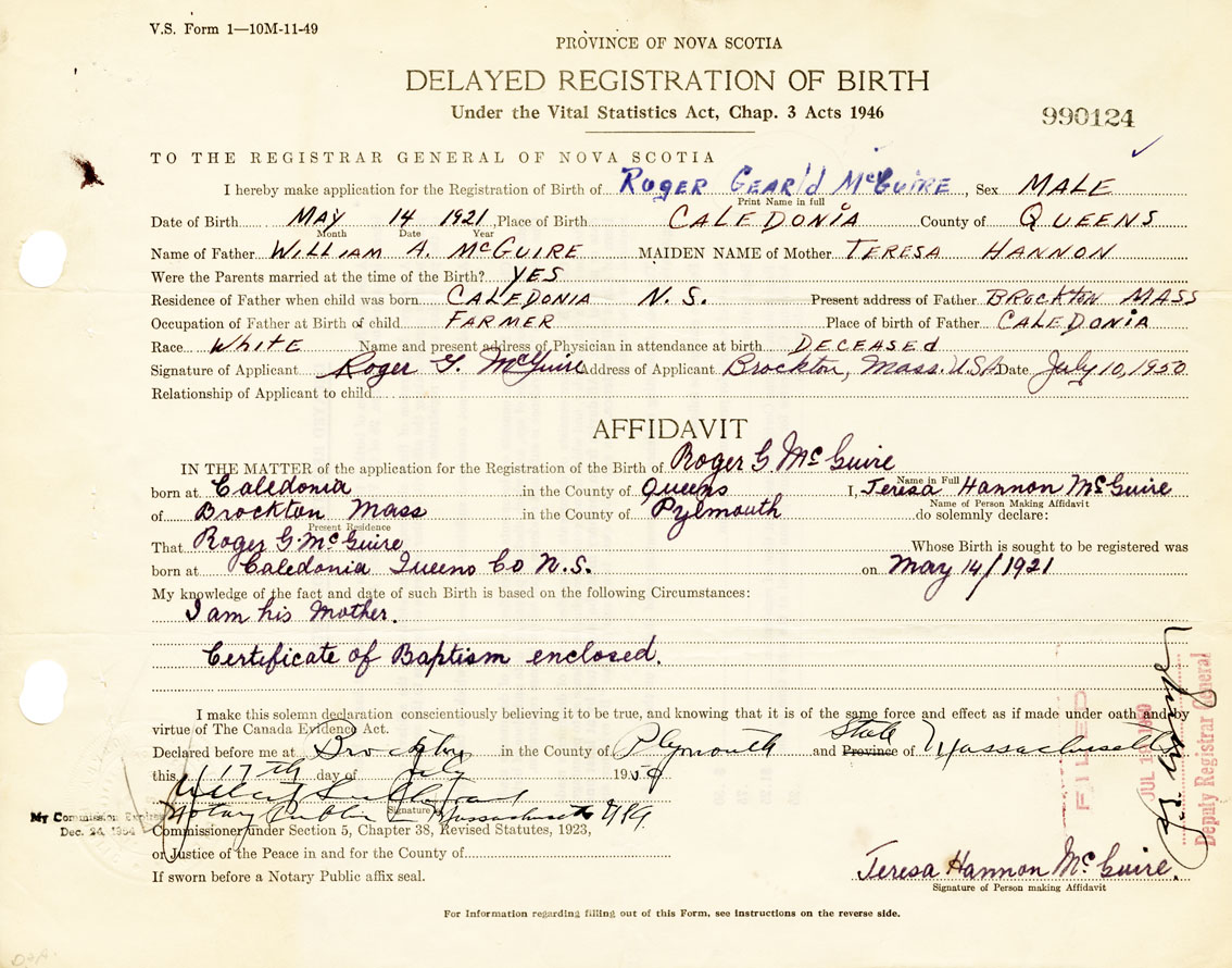 21. Name and Post Office address of Informant Roger G. McGuire Brockton, Massachusetts, USA