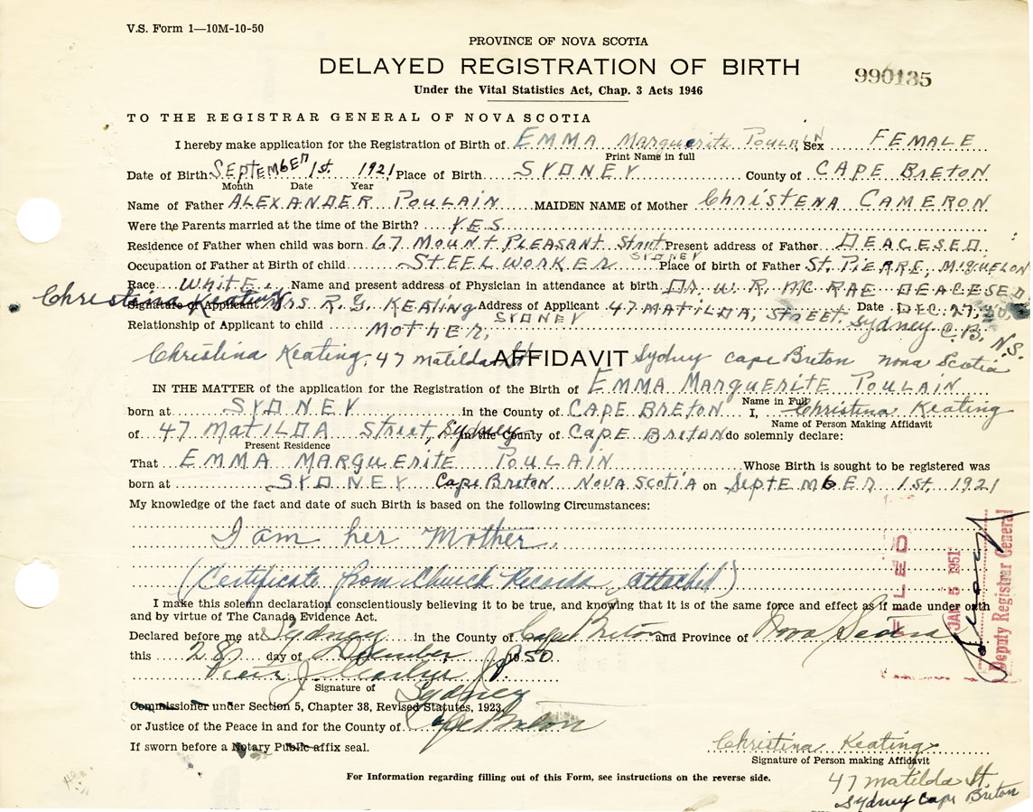 Born at Sydney in the County of Cape Breton