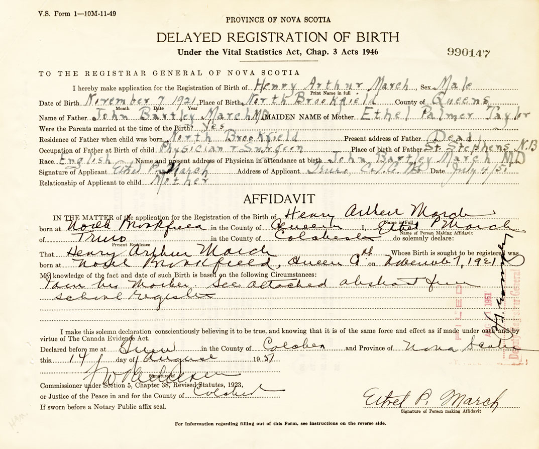 That Henry ArthurMarch Whose Birth is sought to be registered was