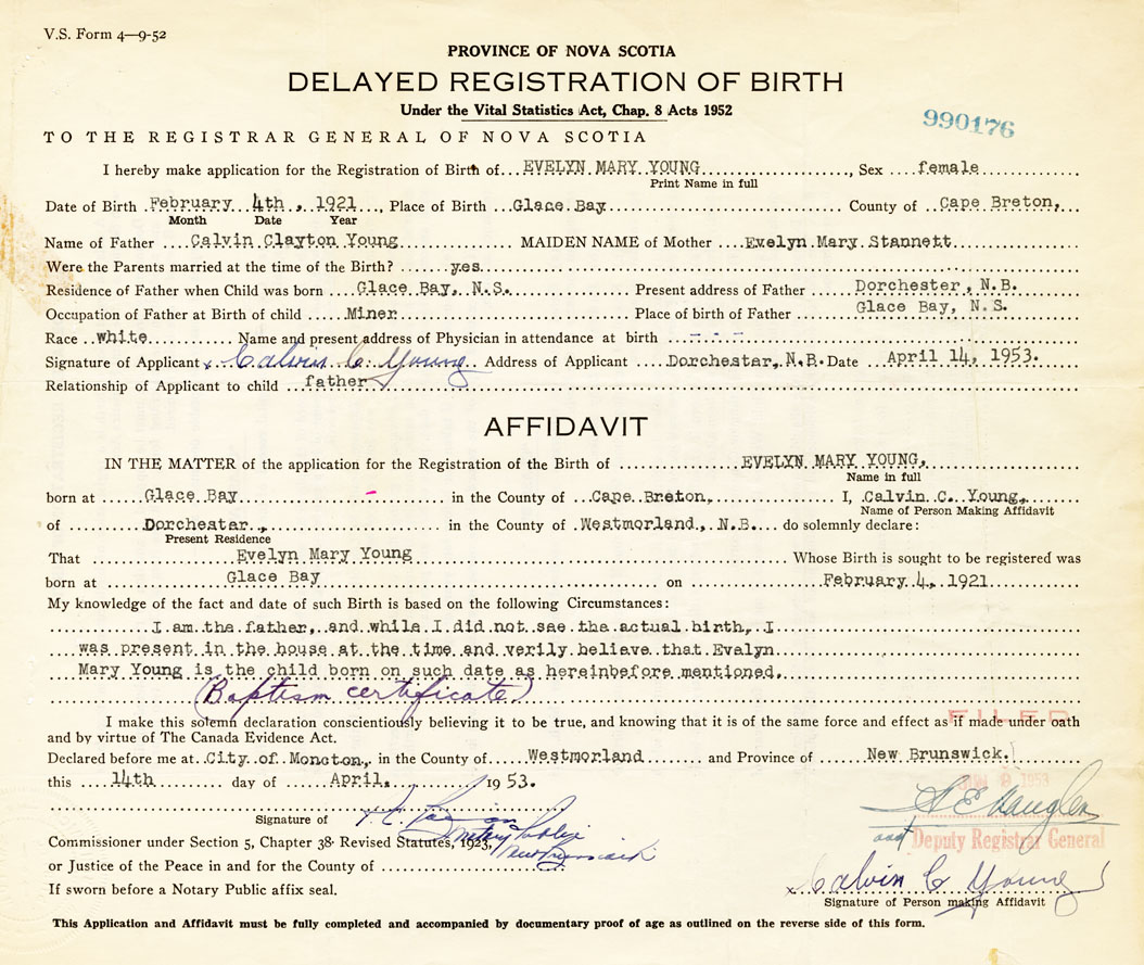 Name of Father Calvin Clayton Young MAIDEN NAME of Mother Evelyn Mary Stannett