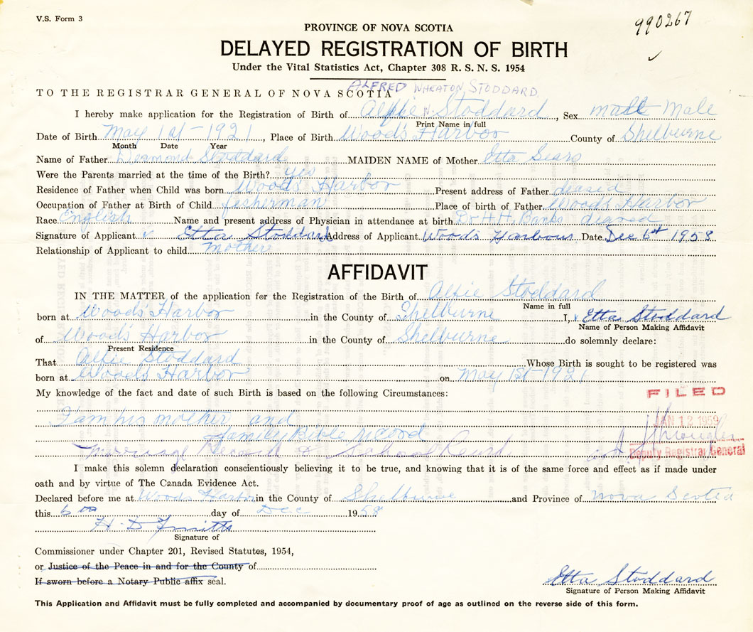 Date of Birth May 1, 1921 Place of Birth Woods HarbourCounty of Shelburne