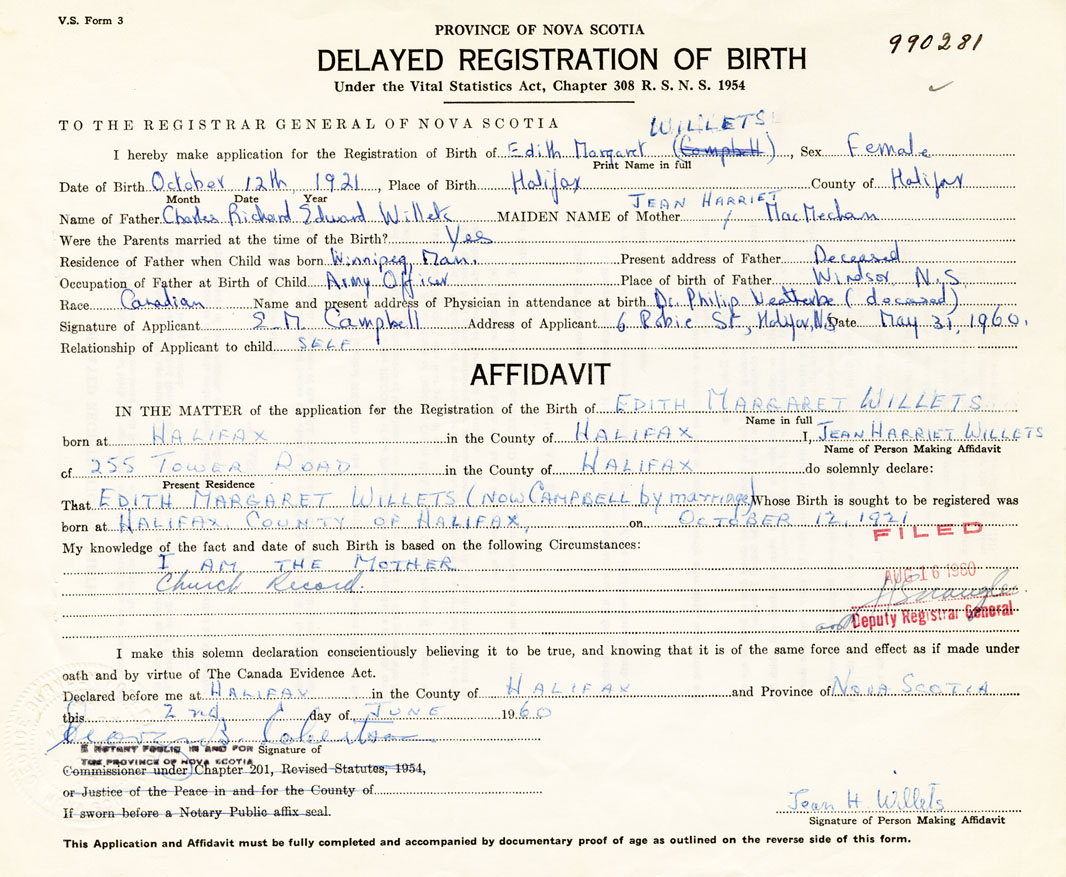 Name of Father Charles Richard Edward Willets MAIDEN NAME of Mother Jean Harriet MacMechan