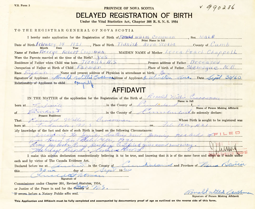 IN THE MATTER of the application for the Registration of the Birth of Ronald WillisCrossman
