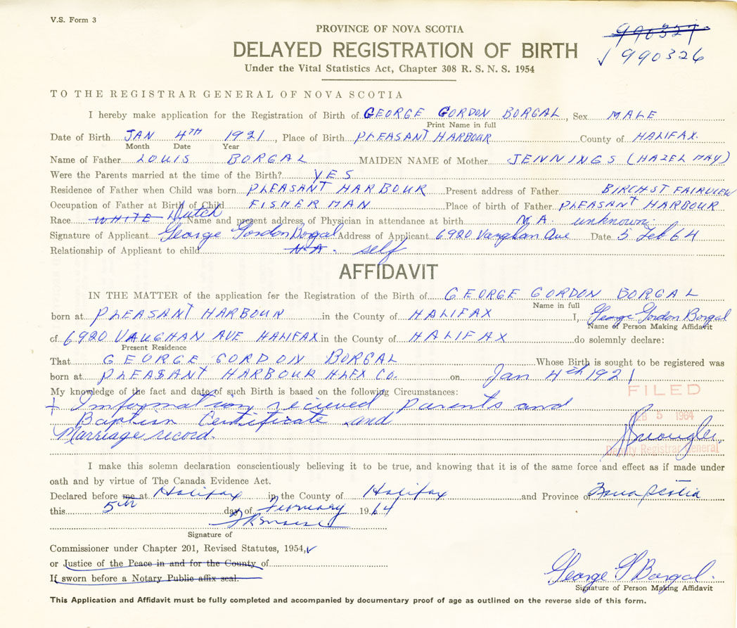 Signature of Applicant George Gordon Borgal Address of Applicant 6920 Vaughan Ave. Halifax Date 5 February 1964