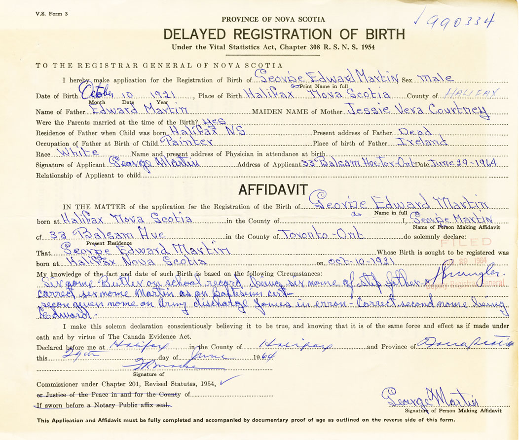 21. Name and Post Office address of Informant George Martin 33 Balsam Ave. Toronto, Ontario