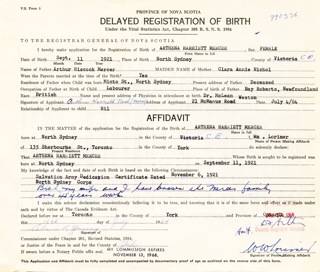 Salvation Army Dedication Certificate dated November 6, 1921 North Sydney Corps. Both my wife and I have known the Mercer family over 45 years