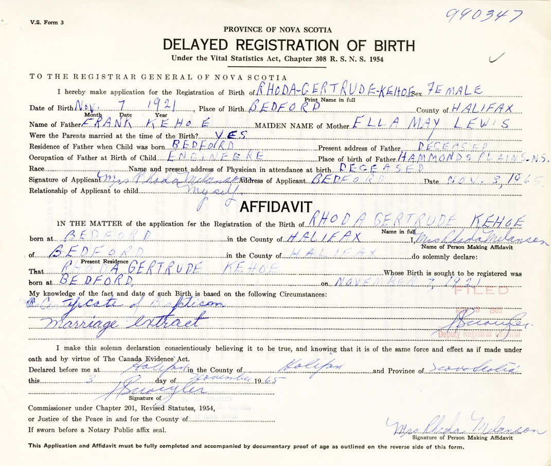 That Rhoda GertrudeKehoe Whose Birth is sought to be registered was