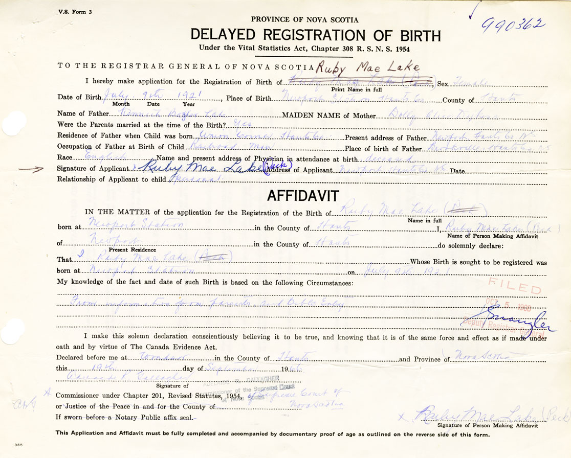 That Ruby MaeLake Whose Birth is sought to be registered was