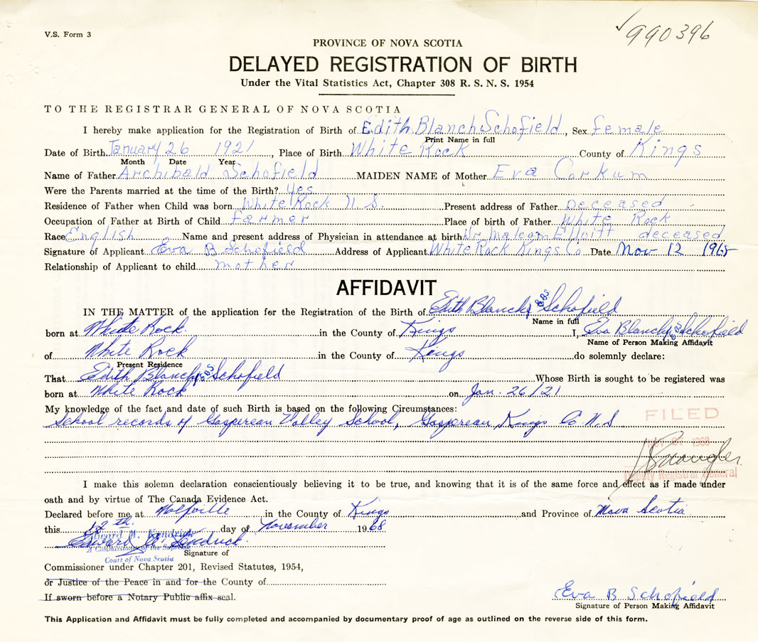 That Edith BlanchSchofield Whose Birth is sought to be registered was