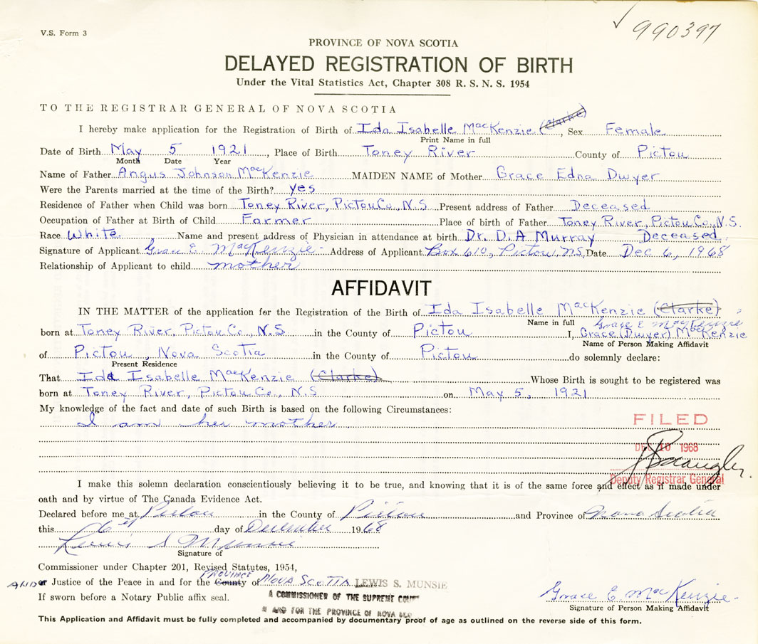 IN THE MATTER of the application for the Registration of the Birth of Ida IsabelleMacKenzie