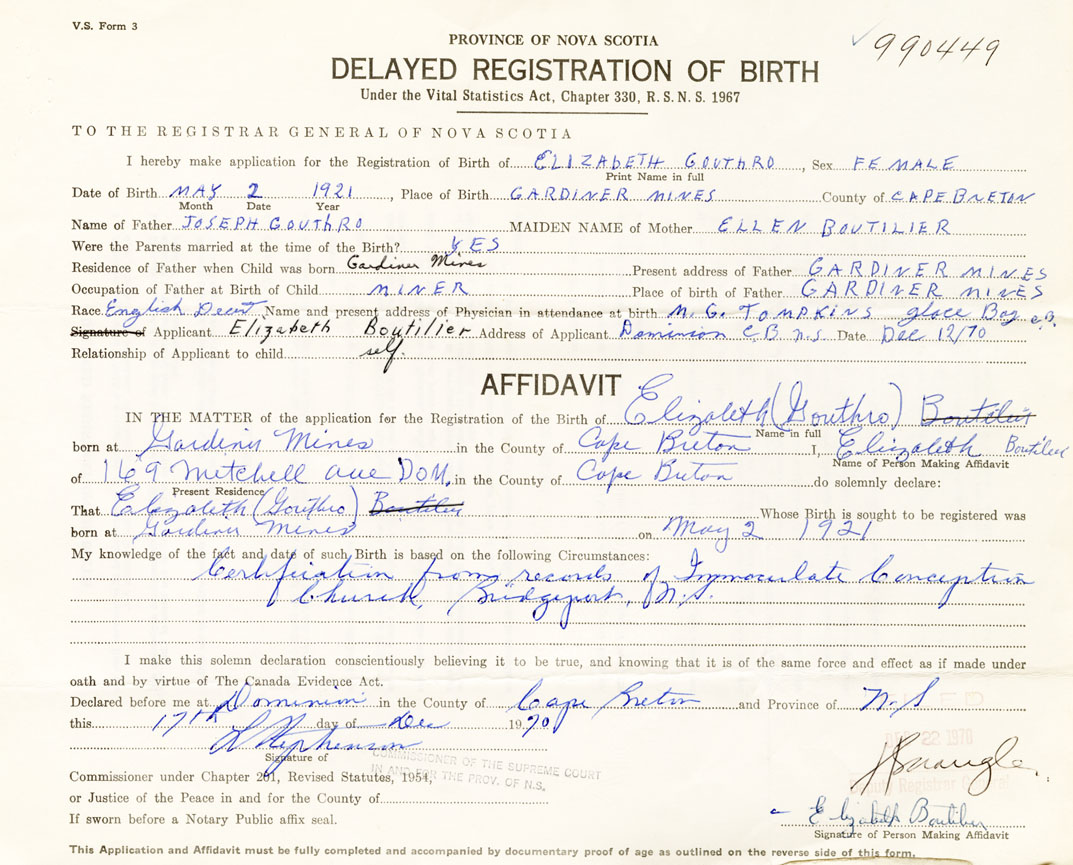 Name of Father Joseph Gouthro MAIDEN NAME of Mother Ellen Boutilier
