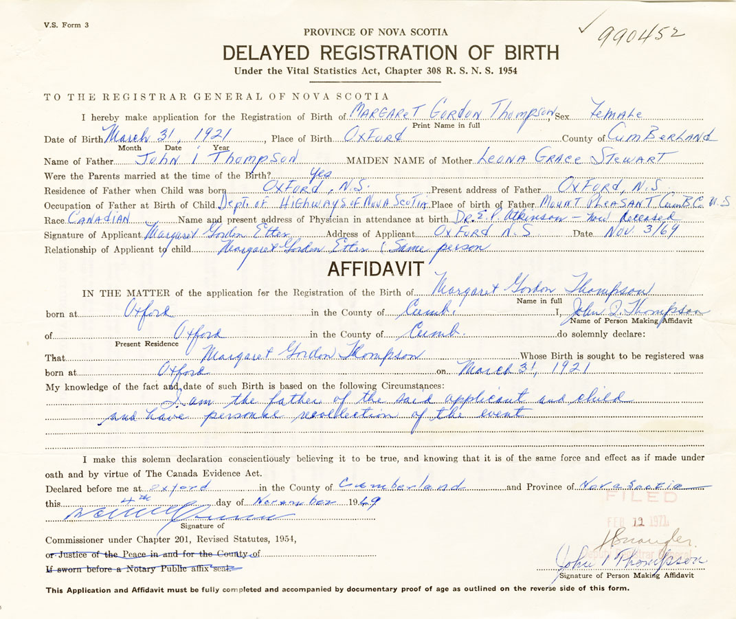 That Margaret GordonThompson Whose Birth is sought to be registered was