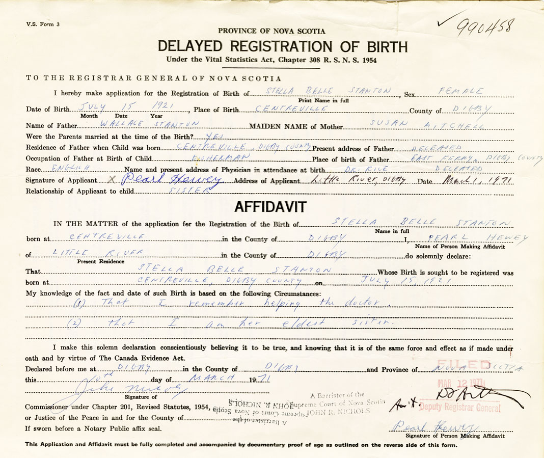IN THE MATTER of the application for the Registration of the Birth of Stella BelleStanton