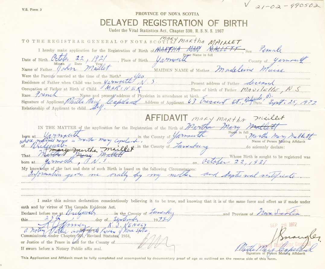 That Mary MarthaMaillet Whose Birth is sought to be registered was