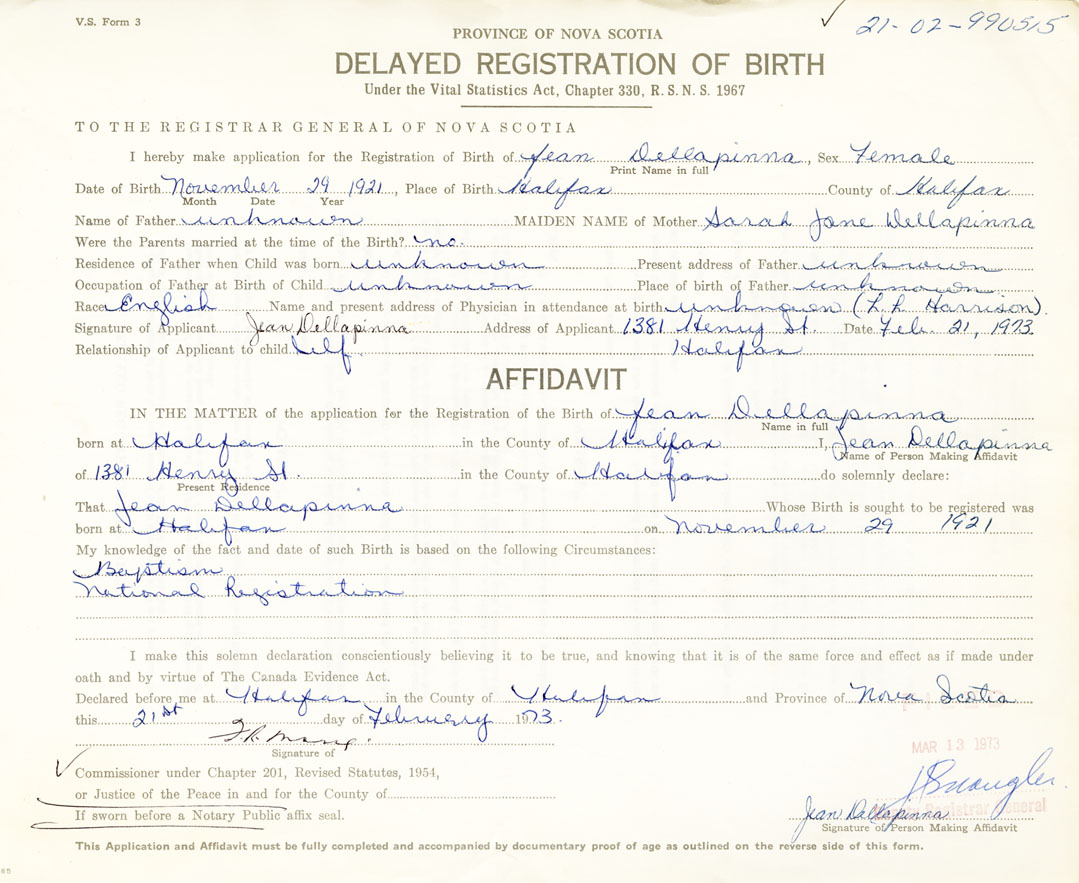 21. Name and Post Office address of Informant Jean Dellapinna 1381 Henry St. Halifax