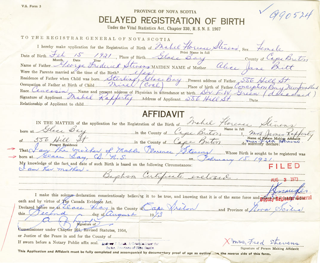 21. Name and Post Office address of Informant Mabel Rafferty 556 Hill St. Glace Bay