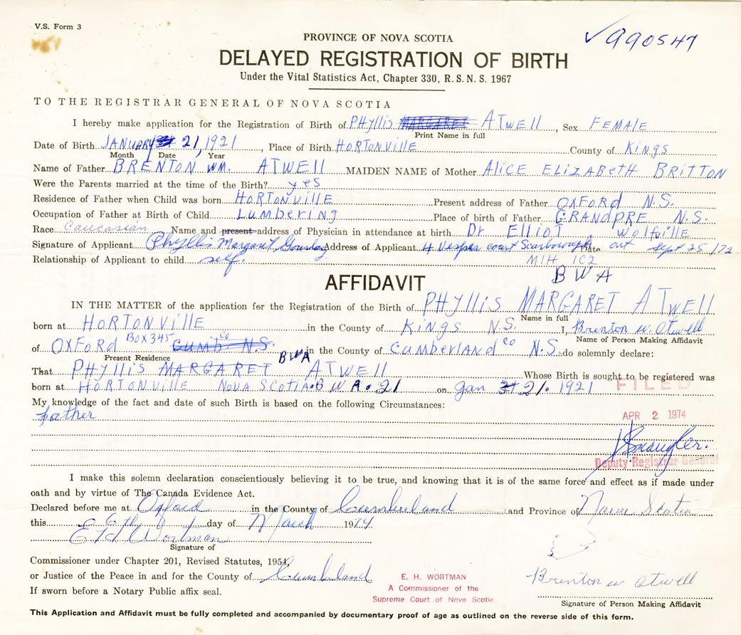 IN THE MATTER of the application for the Registration of the Birth of Phyllis MargaretAtwell