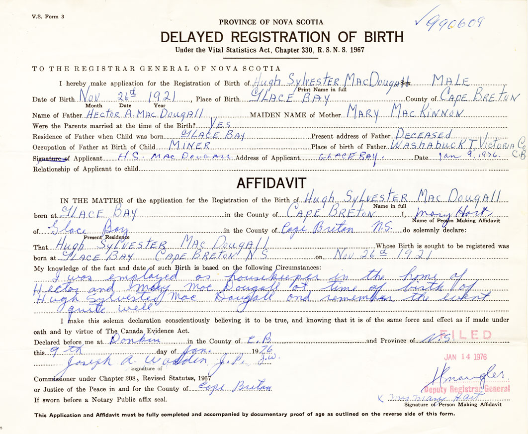 21. Name and Post Office address of Informant H.S. MacDougall Glace Bay
