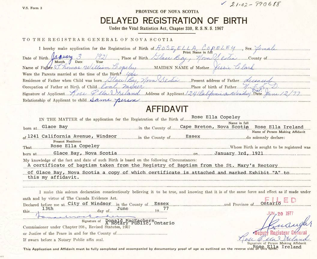 Date of Birth January 3, 1921 Place of Birth Glace BayCounty of Cape Breton